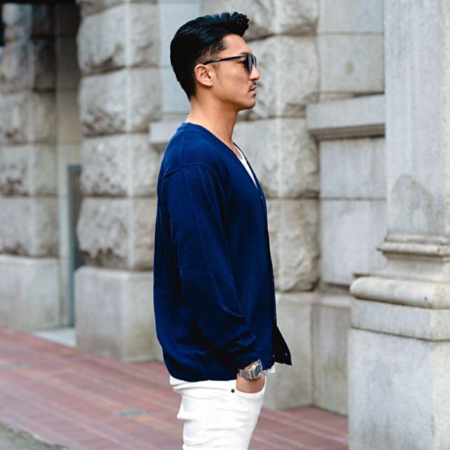Tシャツの上からはもちろん、シャツの上から着ても上品に着こなせるアイテムです。