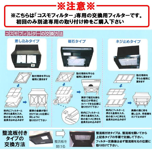 レンジフードの油汚れをシャットアウトする「コスモフィルター」専用交換用フィルター☆捕集能力の高い「特殊ロール状構造フィルター」なので、多量の油煙やホコリ等の汚れもしっかりガードします。 |