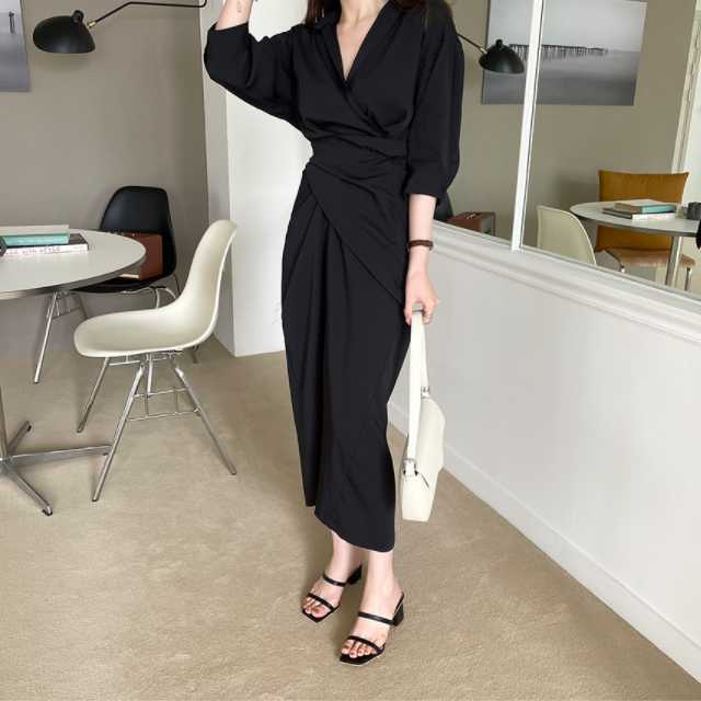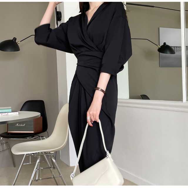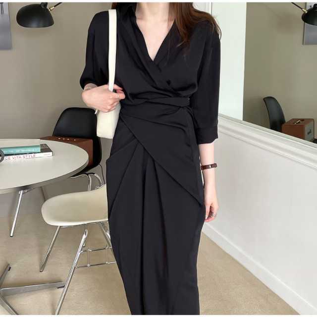 深めのVネックが大人っぽい印象のカシュクールタイトワンピース♪