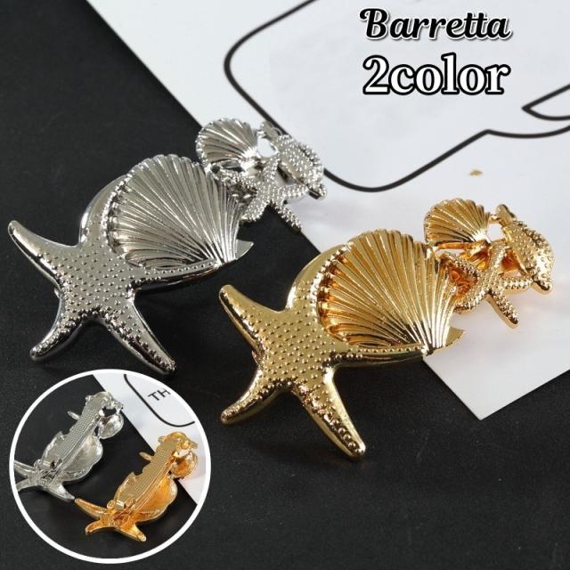 バレッタ 髪留め ヘアアクセサリー レディース 髪飾り まとめ髪 ヘアアレンジ 貝殻 ヒトデ シェル型 ゴールドカラー シルバー