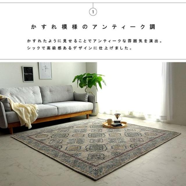 ●上品な風合いのジャカード織りで、アラベスク柄を表現したオリエンタルラグ。デザイン性が高く、耐久性にも優れています。