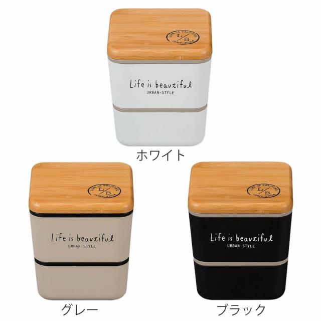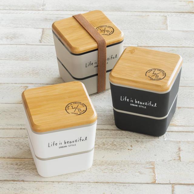 ●モノトーンカラーに竹製の蓋を合わせた、都会的な中にもナチュラルなテイストを織り込んだLife is beautifulランチシリーズの2段弁当箱です。