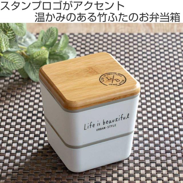 弁当箱 2段 600ml バンブー LIFE IS BEAUTIFUL スクエアネストランチ ( お弁当箱 ランチボックス レンジ対応 食洗機対応 竹蓋 二段 女子 大人 レンジOK 食洗機OK 弁当 お弁当 ランチベルト付き 入れ子式 女性 おしゃれ )