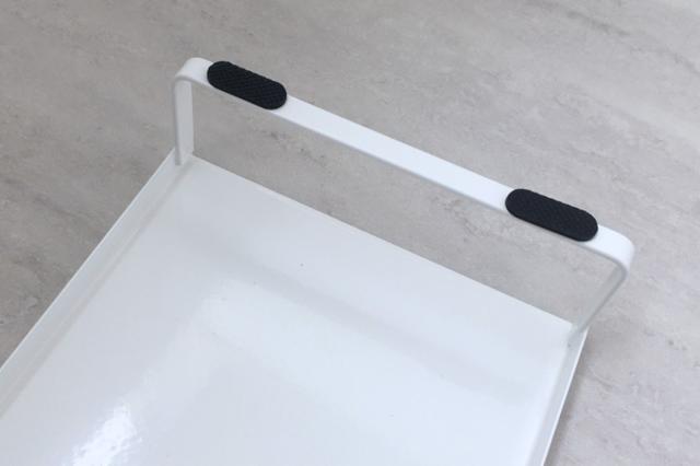 粉体塗装仕上げで、サビに強く耐久性があり、脚部には傷をつけにくいすべり止め付きです。
