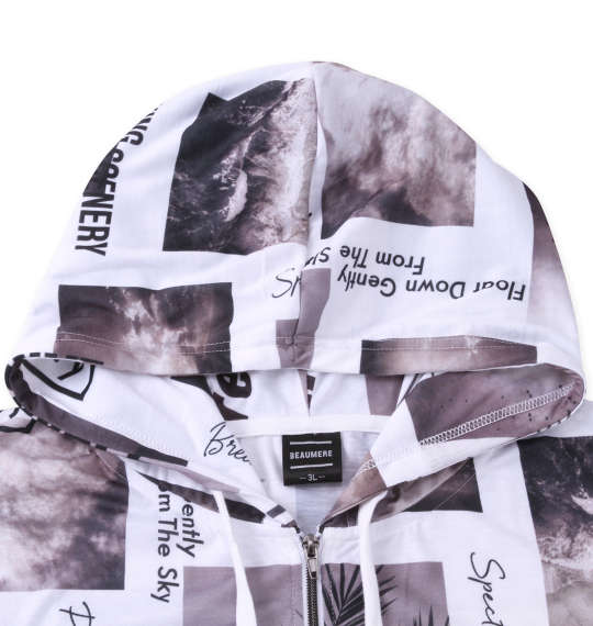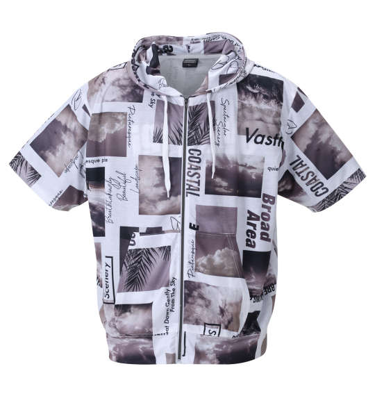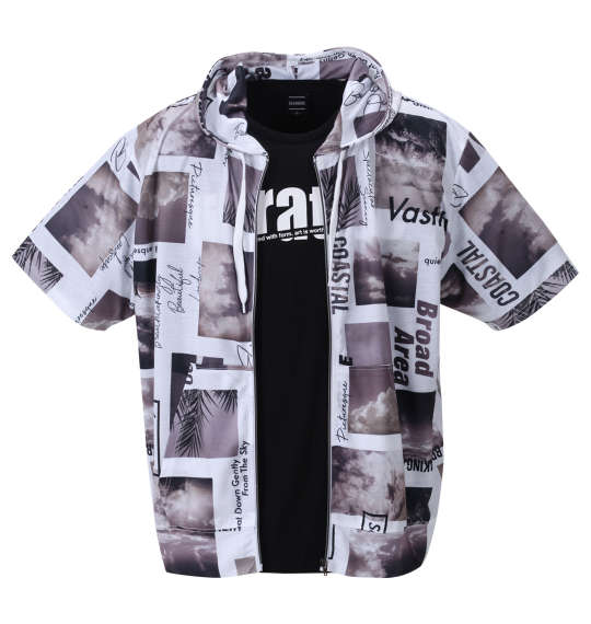 大きいサイズ メンズ BEAUMERE 昇華総柄 半袖 フルジップ パーカー + 半袖 Tシャツ グレー系 × ブラック 1258-2272-2 3L 4L 5L 6L
