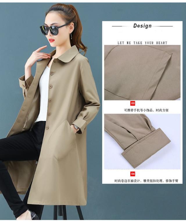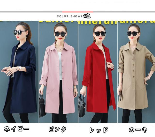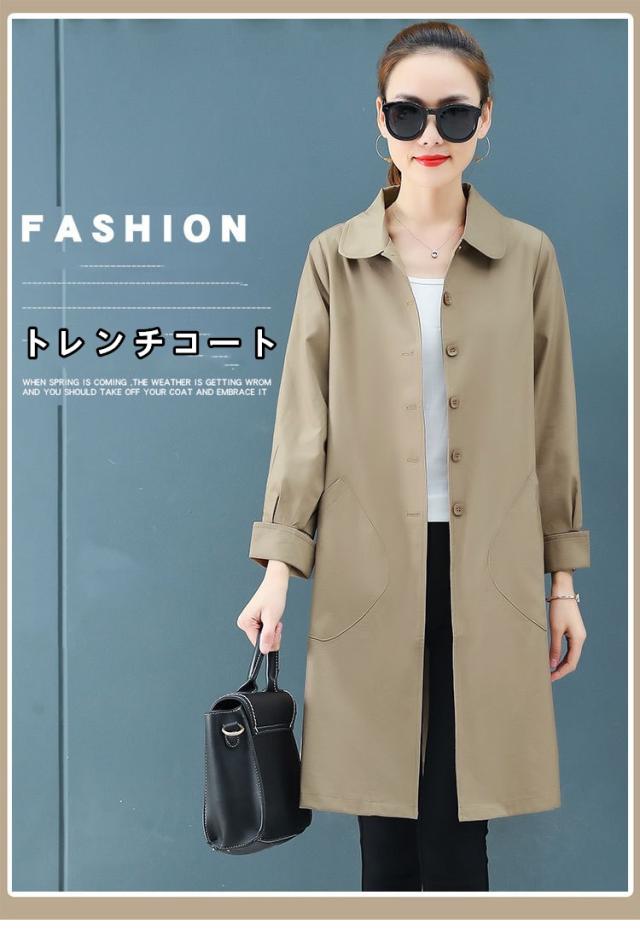 スプリングコートレディーストレンチコート春薄手スリムロング通勤アウター20代30代40代50代ファッ 秋アウター OL 通勤 ゆったり 大人 韓国風 新作ション