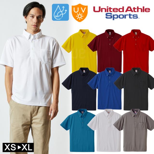 半袖 ポロシャツ UVカット ユナイテッドアスレ 5921-01 4.1オンス ドライ アスレチック ボタンダウン ポケット付 UnitedAthle スポーツ 速乾 メール便送料無料
