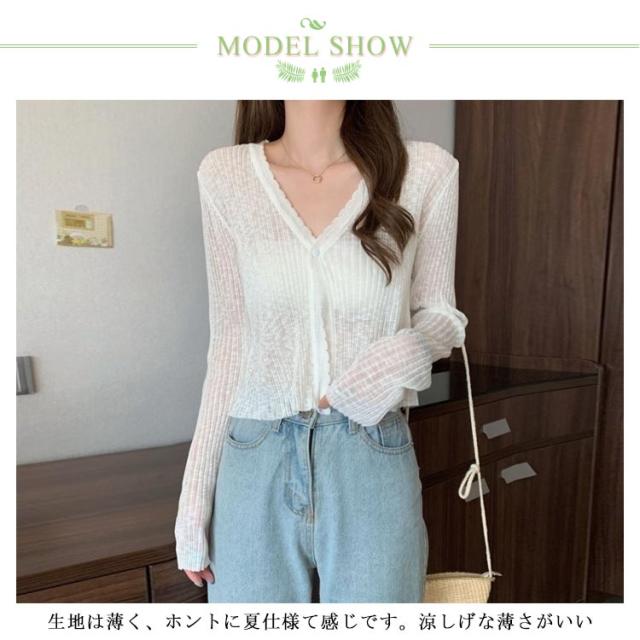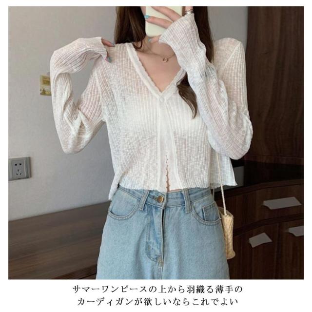 | 日焼け止めから冷房対策まで対応できる 生地は薄く、ホントに夏仕様て感じです。涼しげな薄さがいい サマーワンピースの上から羽織る薄手のカーディガンが欲しいならこれでよい アレンジ自在でいろんなコーデを楽しめる。 | |