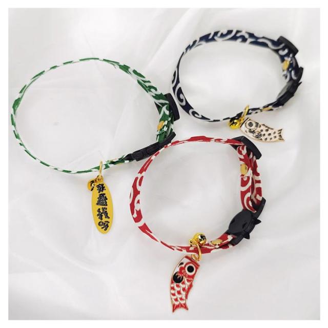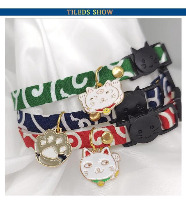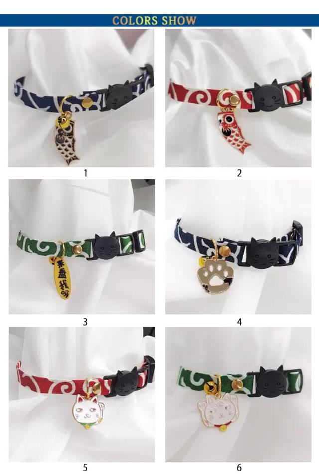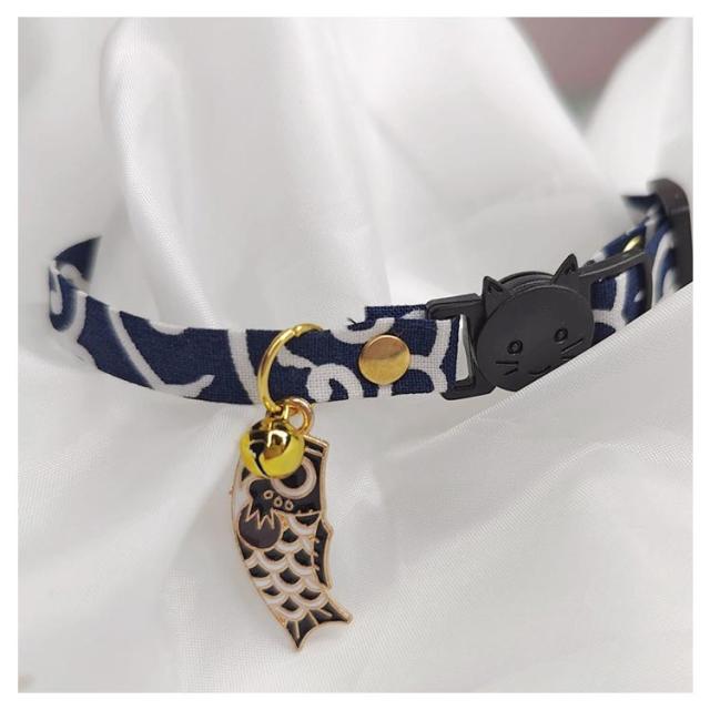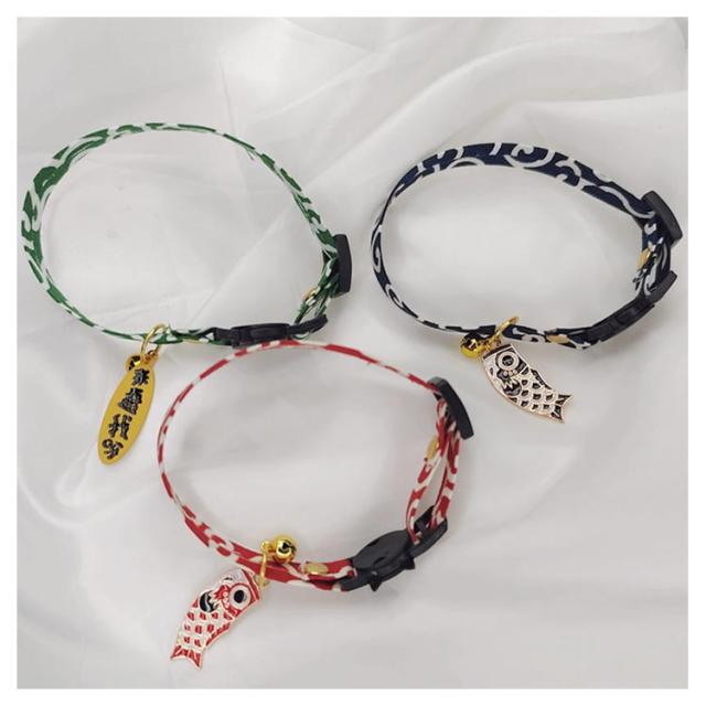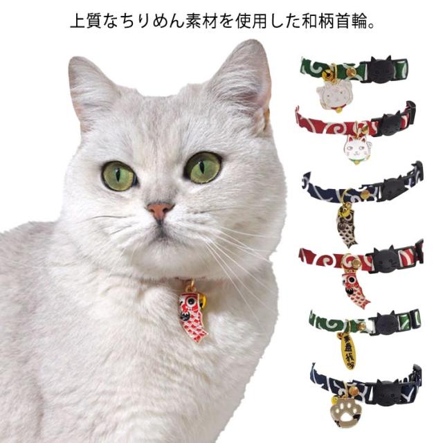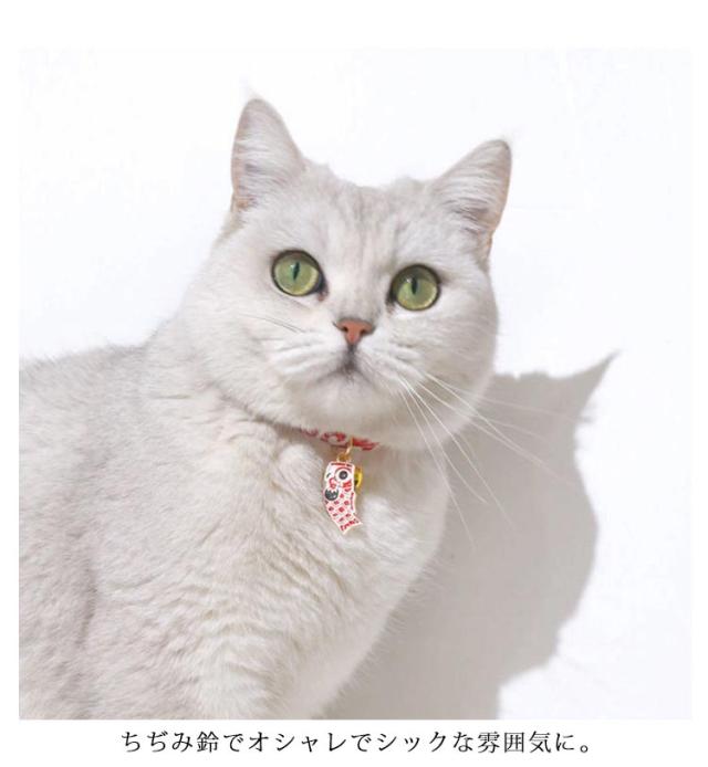 | 上質なちりめん素材を使用した和柄首輪。 ちぢみ鈴でオシャレでシックな雰囲気に。 | |