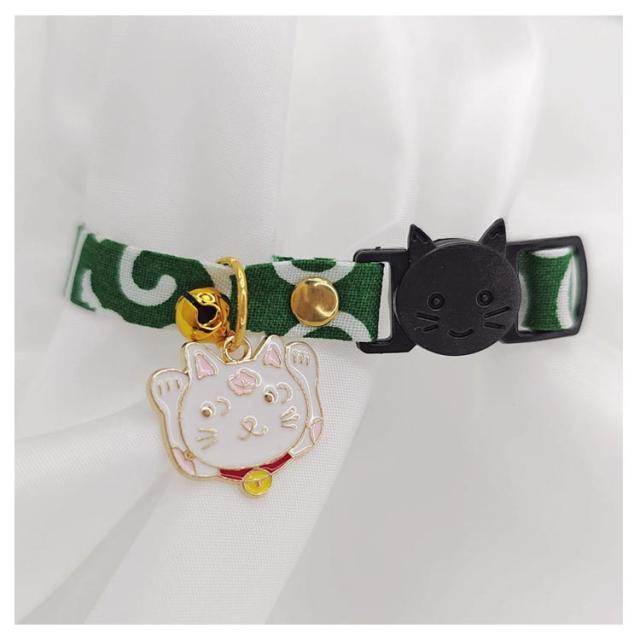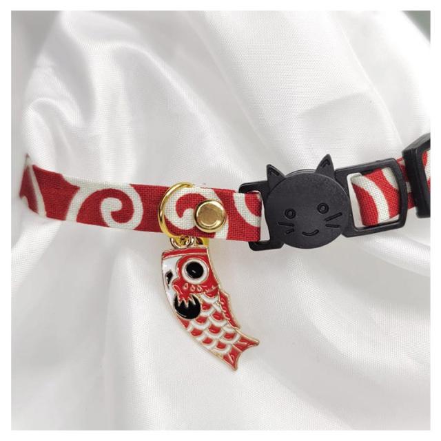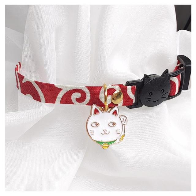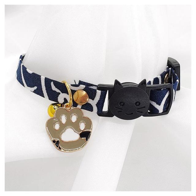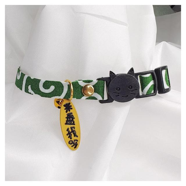 【送料無料】 猫 首輪 おしゃれ 唐草模様 猫首輪 セーフティー バックル 鈴 小判 チャーム付き仕様 唐草 リボン 鈴 セーフティバックル ネコ ねこ 超小型犬 安全 可愛い かわいい 猫用首輪 安全バックル