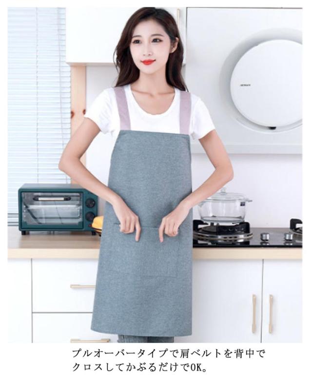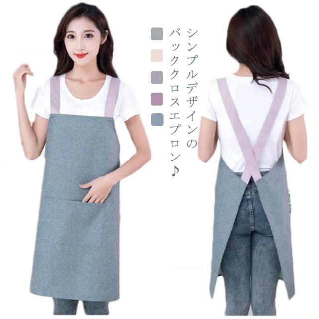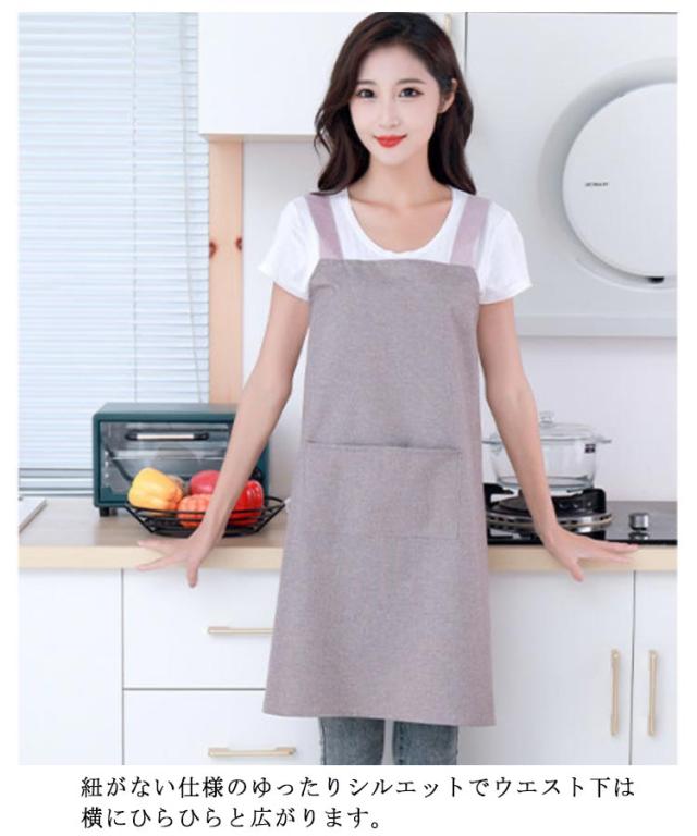 防水 エプロン 大きいサイズ 送料無料 着脱簡単 かぶるだけ バッククロス ひも無し ジャンパースカート風 ゆったりサイズ 肩こりしない 軽い ひも無し 無地 北欧 台所 カフェ 主婦 保育士