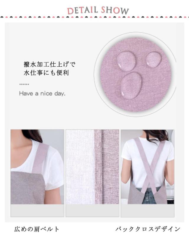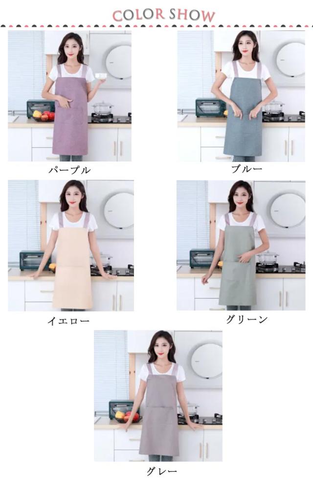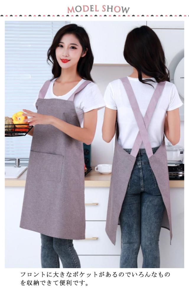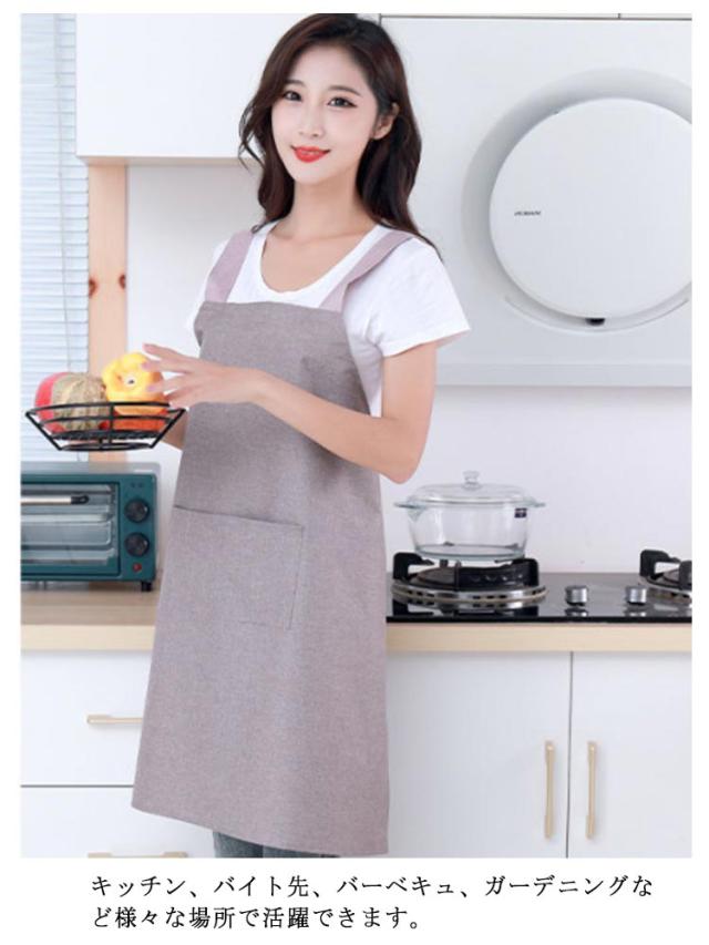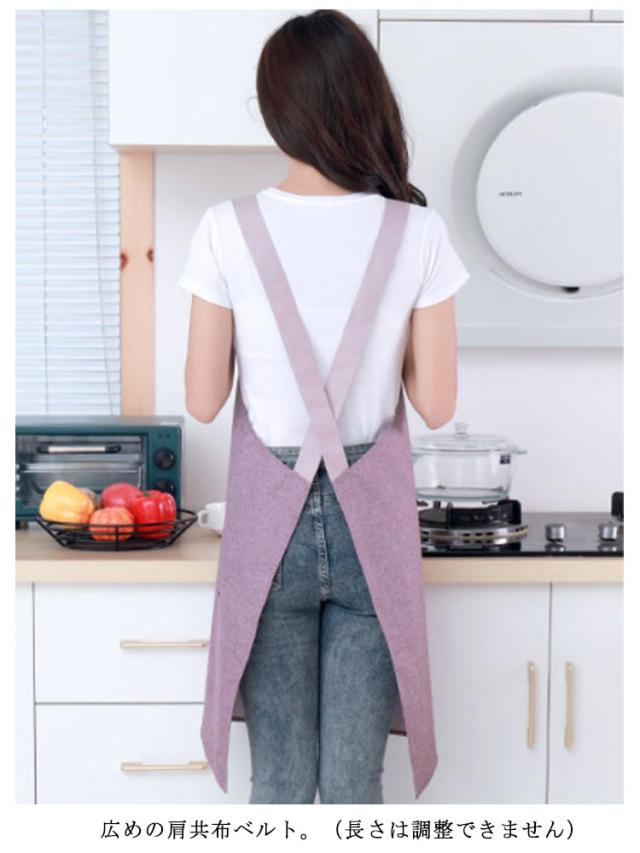 | シンプルデザインのバッククロスエプロン♪ フロントに大きなポケットがあるのでいろんなものを収納できて便利です。 広めの肩共布ベルト。(長さは調整できません) プルオーバータイプで肩ベルトを背中でクロスしてかぶるだけでOK。 紐がない仕様のゆったりシルエットでウエスト下は横にひらひらと広がります。 キッチン、バイト先、バーベキュ、ガーデニングなど様々な場所で活躍できます。 | |