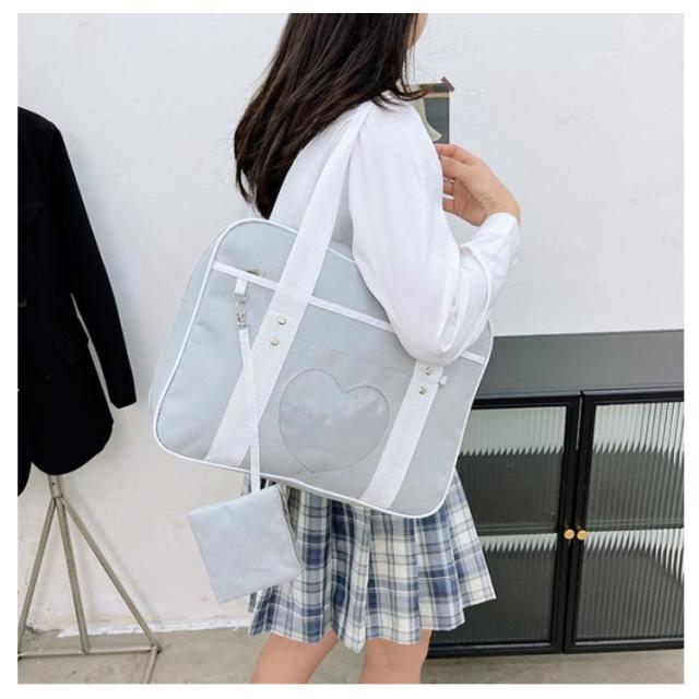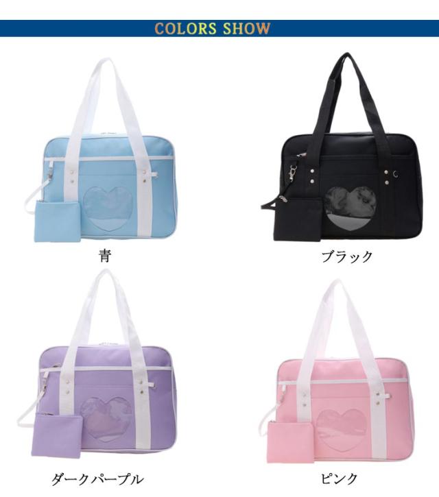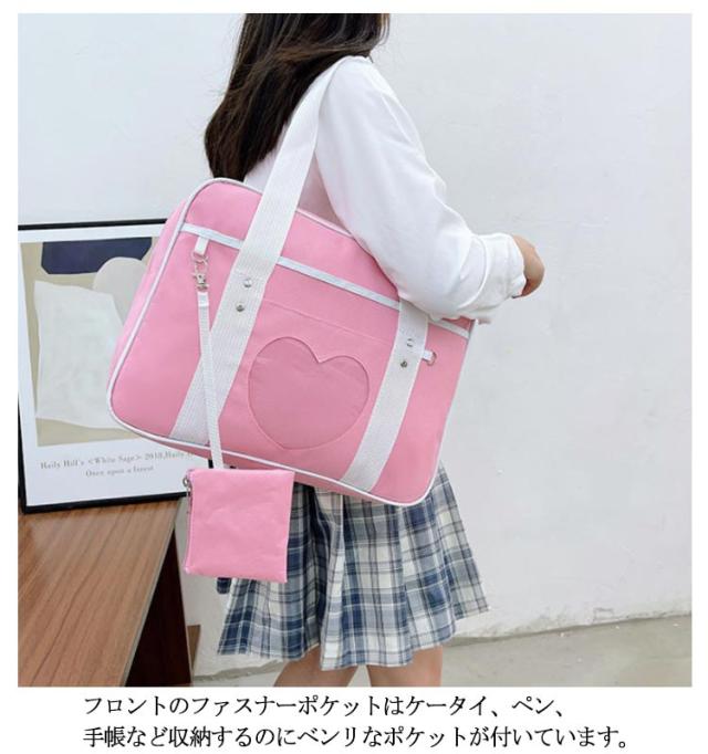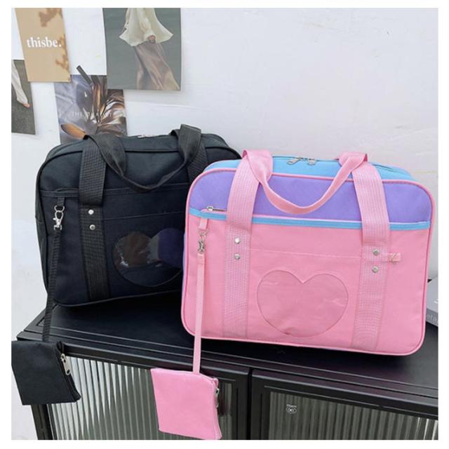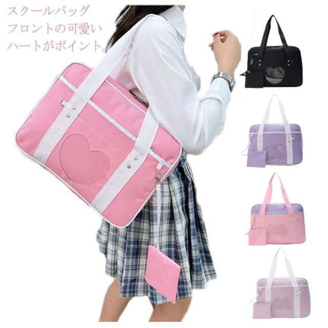 スクールバッグ ショルダー サブバッグ 女子高生 サブバッグ 中学生 高校生 女子 男子 ブラック 黒 パープル ピンク 配色 学生鞄 通学 学校 大容量
