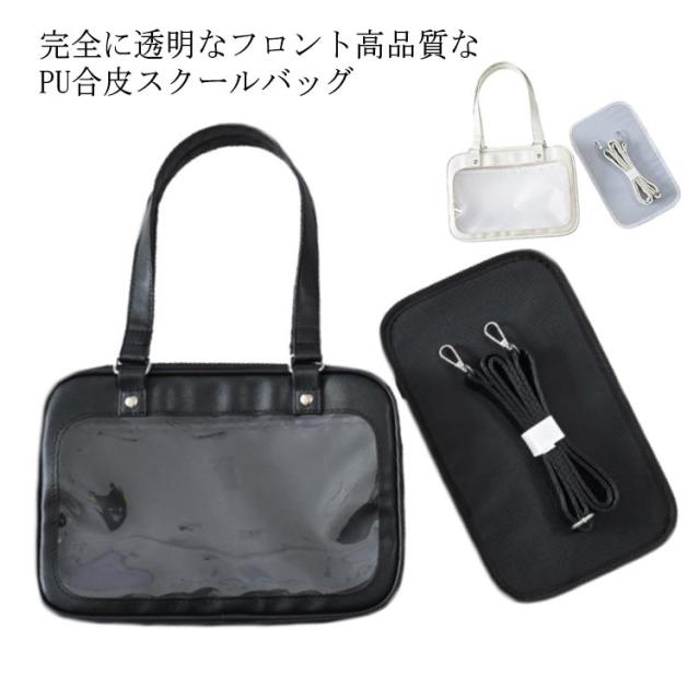 スクールバッグ 合皮 ショルダー サブバッグ 女子高生 サブバッグ 中学生 高校生 女子 男子 白 ブラック 黒 学生鞄 通学 学校 大容量 A4 透明 送料無料