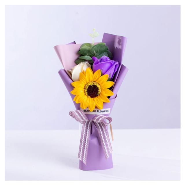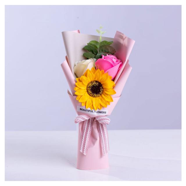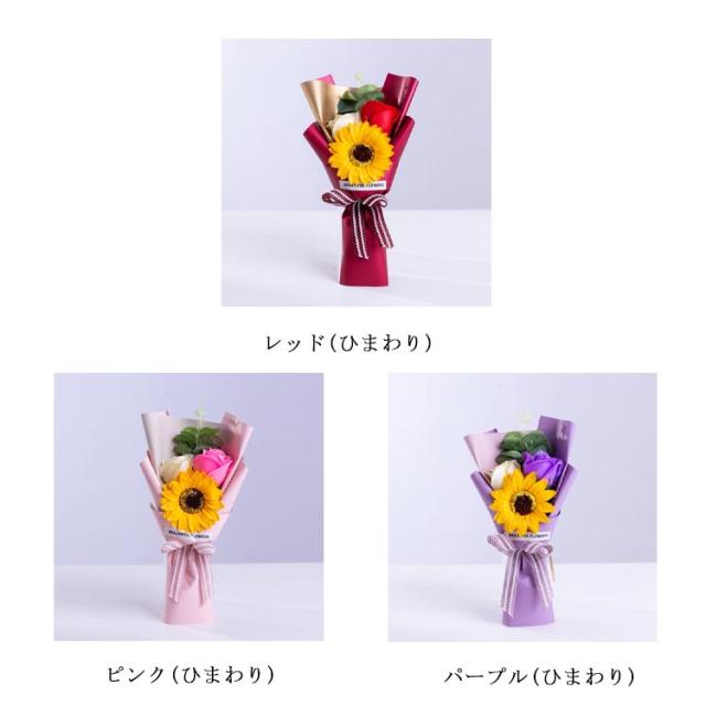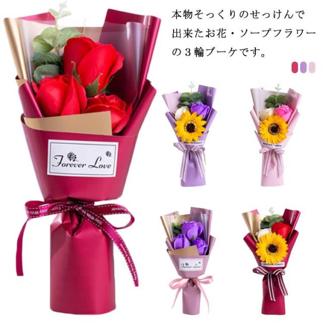 全3色 ソープフラワー プチギフト 3輪ブーケ 花束 母の日 退職祝い ローズ ひまわり ミニブーケ 石鹸 ギフト ウエディング 結婚式 二次会 誕生日 雑貨 造花 謝恩会 卒業式 卒業祝い 卒園祝い