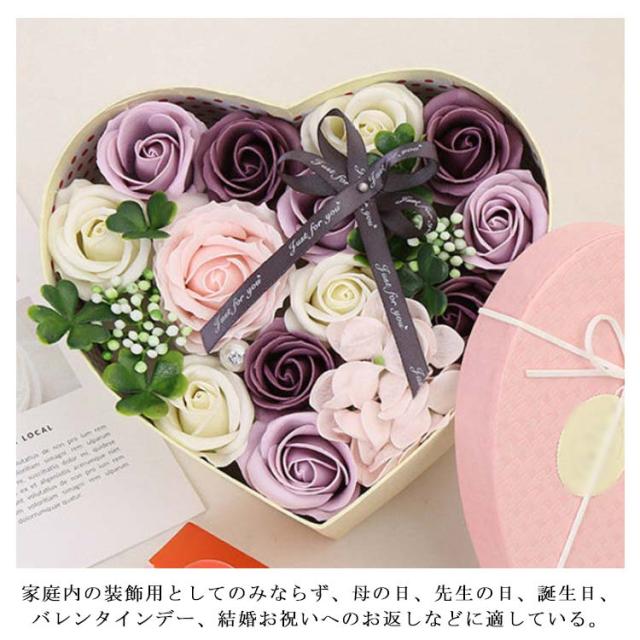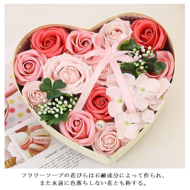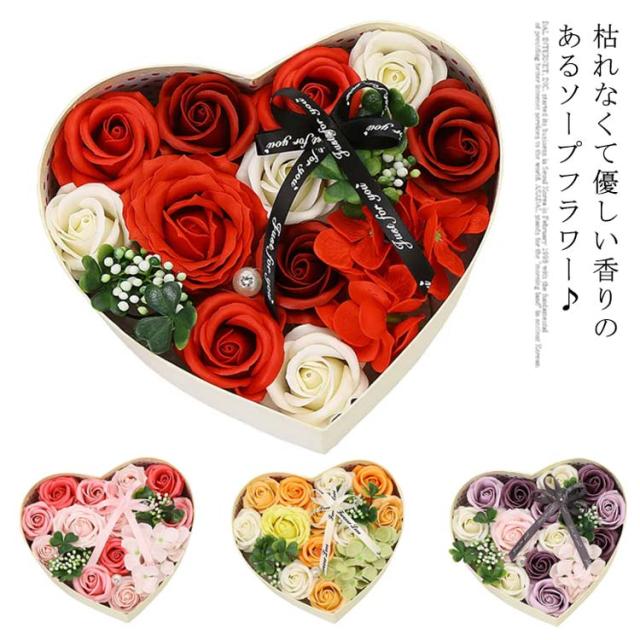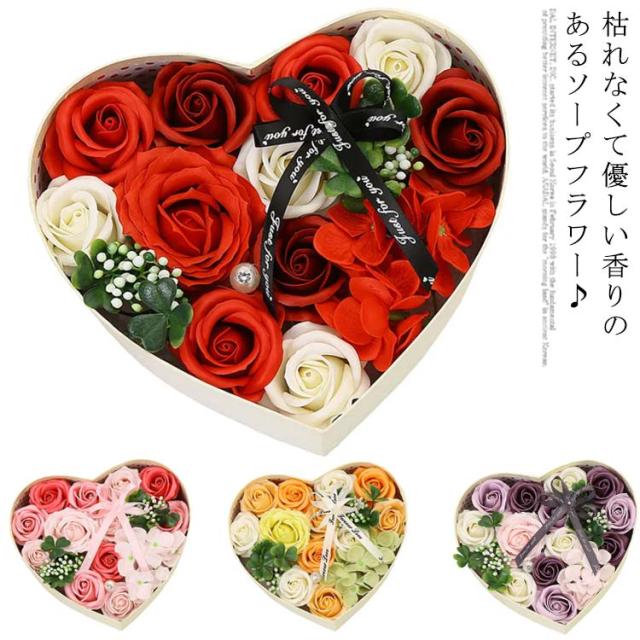 ソープフラワー ボックス 枯れない花 バラ 石鹸 造花 フラワーボックス アレンジメント ハート型 箱入り 消臭 ギフト プレゼント 結婚式 母の日 父の日 敬老の日 お祝い お見舞い