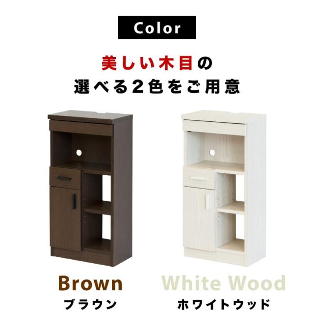 | プリント紙化粧繊維板 引出ストッパー付き 可動棚(空間下部)1枚・3.2cmピッチ5ヶ所 可動棚(扉内部)1枚・3.2cmピッチ3ヶ所 |