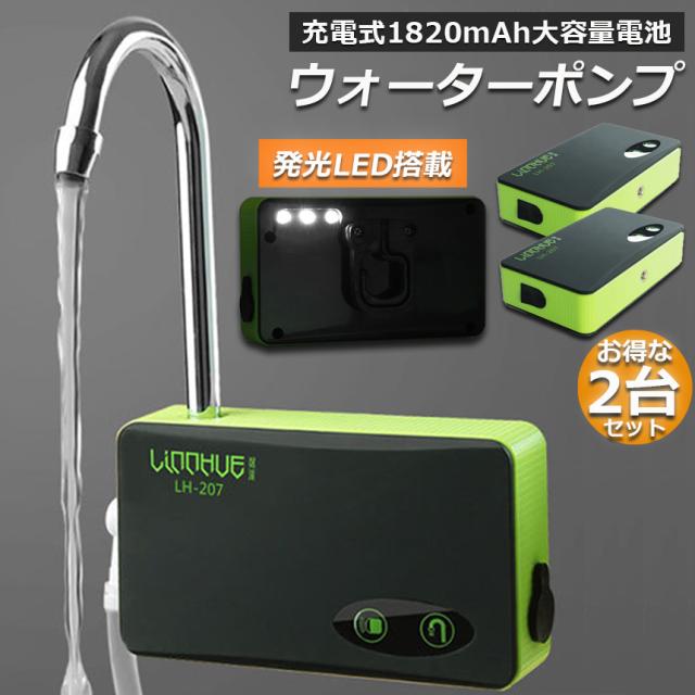 ポンプ エアーポンプ ウォーターポンプ 2台セット 給水ポンプ 小型 一体化 充電式 LEDランプ付き 揚水 排水 釣り 水槽