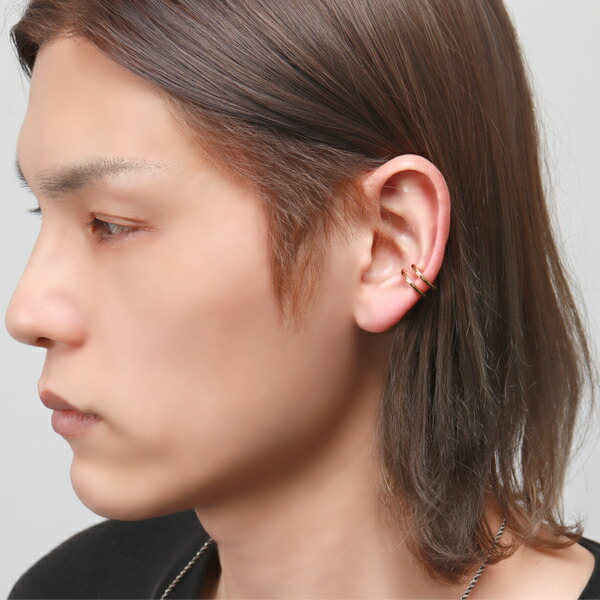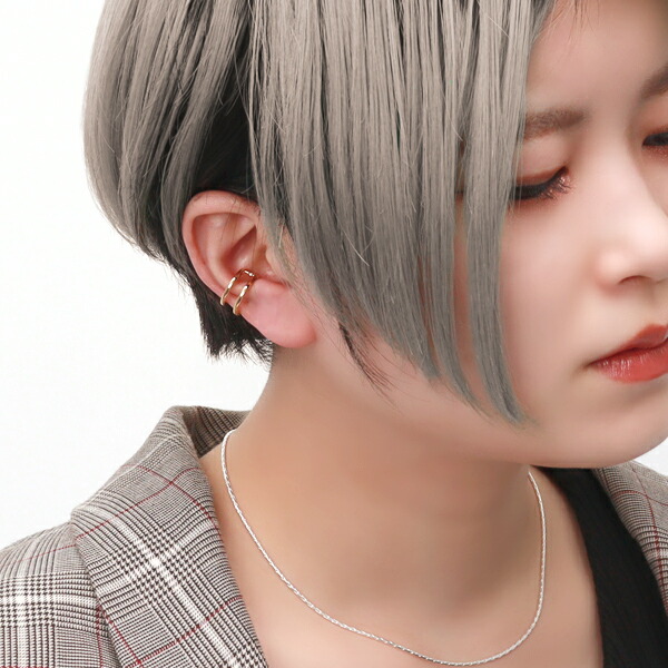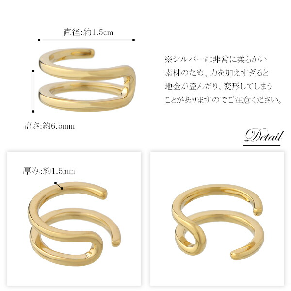 シンプル ダブルライン ゴールドカラー シルバー925 イヤーカフ (1P 片耳用)
