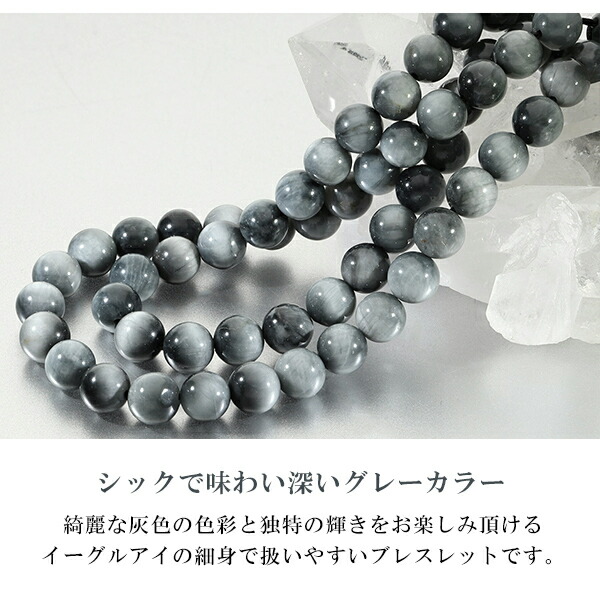 イーグルアイ ブレスレット 6.5mm 16.5〜17.5cm S〜L サイズ グレータイガーアイ タイガーアイ 天然石 パワーストーン 数珠ブレスレット グレー