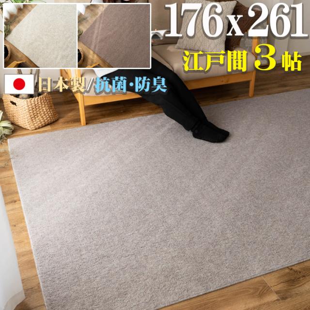 カーペット 3畳 日本製 抗菌 防臭 176×261 ラグ シンプル 江戸間3帖 ラグマット フリーカット アイボリー ブラウン 茶 白 黒 無地 平織り ラグカーペット カジュアル 国産 北欧 おしゃれ 床暖房 ダイニング リビング 絨毯 じゅうたん ワンルーム オールシーズン