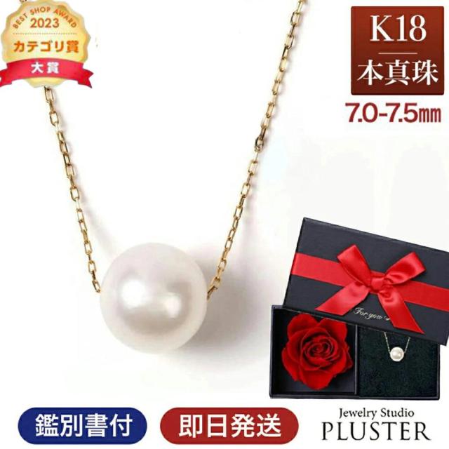 ネックレス パールネックレス パール 一粒 K18 真珠ネックレス パールスルーネックレス あこや真珠 レディース 真珠 本真珠 宇和島 冠婚葬祭 フォーマル 7mm-7.5mm 結婚式 入学式 卒業式 人気 二十歳 限定ケース付 ギフト プレゼント 誕生日 母の日