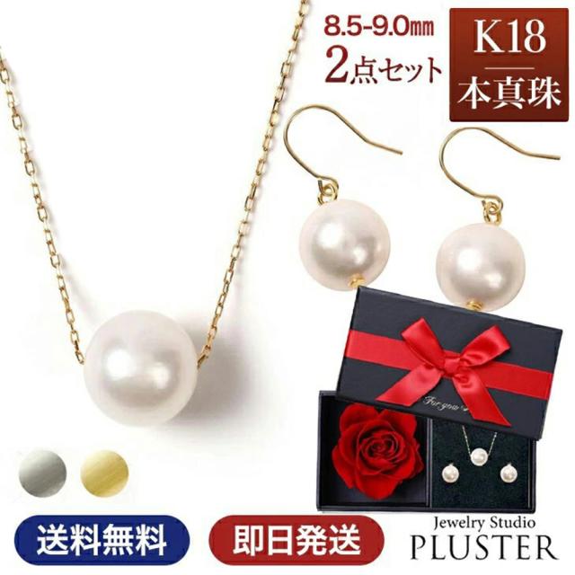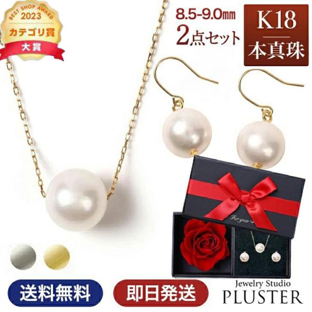 ネックレス パールネックレス パール 一粒 K18 ピアス パールピアス2点 セット スルーネックレス あこや真珠 レディース 真珠 本真珠 宇和島 冠婚葬祭 フォーマル 8.5mm-9mm 結婚式 入学式 卒業式 人気 二十歳 限定ケース付 ギフト プレゼント 誕生日 母の日