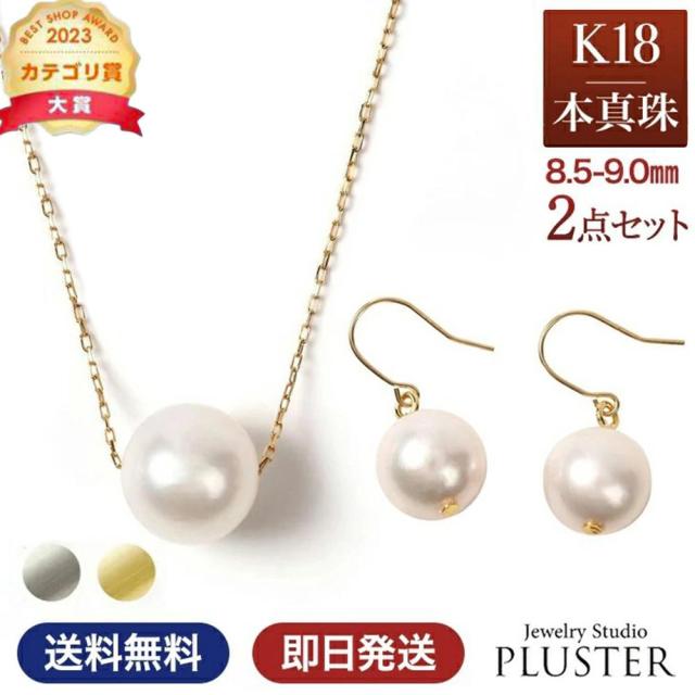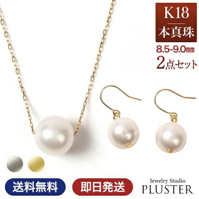 ネックレス パールネックレス パール 一粒 K18 ピアス パールピアス 2点 セット スルーネックレス あこや真珠 レディース 真珠 本真珠 宇和島 冠婚葬祭 フォーマル 8.5mm-9mm 結婚式 入学式 卒業式 人気 二十歳 ギフト プレゼント 誕生日 ホワイトデー