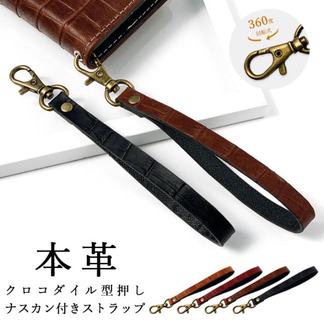 ストラップ 本革 クロコダイル ナスカン付き 携帯ストラップ レザー 携帯 スマホ キーホルダー リストストラップ スマホケース