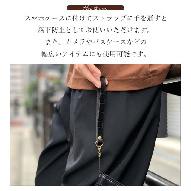 ストラップ 本革 クロコダイル 携帯ストラップ レザー 携帯 スマホ キーホルダー リストストラップ スマホケース