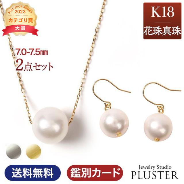 ネックレス パールネックレス パール 一粒 K18 花珠真珠 ピアス パールピアス 2点 セット 花珠 鑑別書 あこや真珠 レディース 真珠 本真珠 宇和島 冠婚葬祭 フォーマル 7.0mm-7.5mm 結婚式 入学式 卒業式 人気 二十歳 ギフト クリスマス プレゼント 誕生日