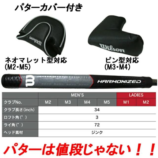 グレーグリップ パターカバー付き Wilson ウィルソン HARMONIZED ハーモナイズドパター 34インチ ゴルフ