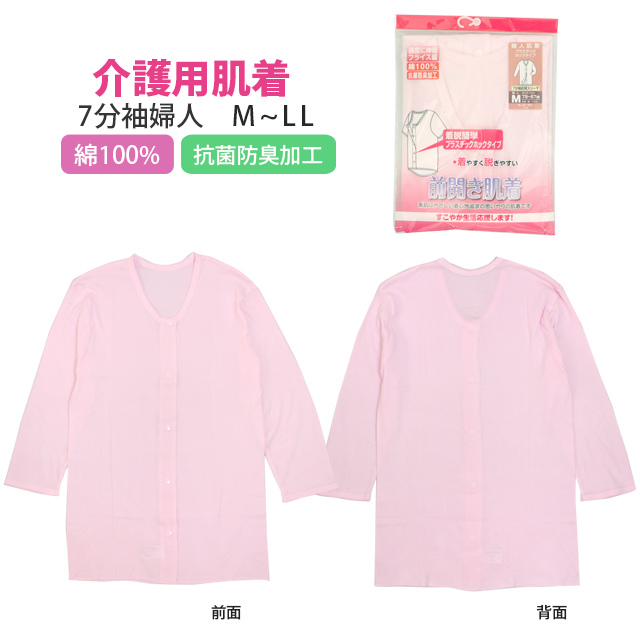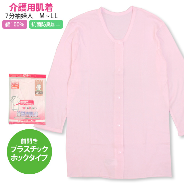 タイプ:介護用 前あき ホックボタン 肌着 7分袖 インナー シャツ 下着 ピーチ ピンク 入院 介護