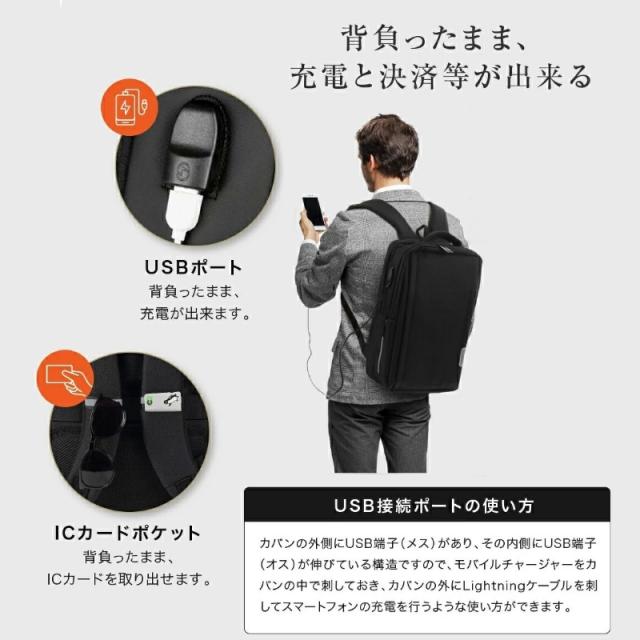 【USBポート付き】バッグを開けずにスマホの充電が出来ます。