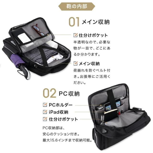 【ビジネス・出張・災害時これ1つで】ビジネス リュック 防水 メンズ 3WAY 通勤 通学 リュックサック 大容量 軽量 ビジネスリュック ビジネスバッグ バッグ PC 15.6インチ