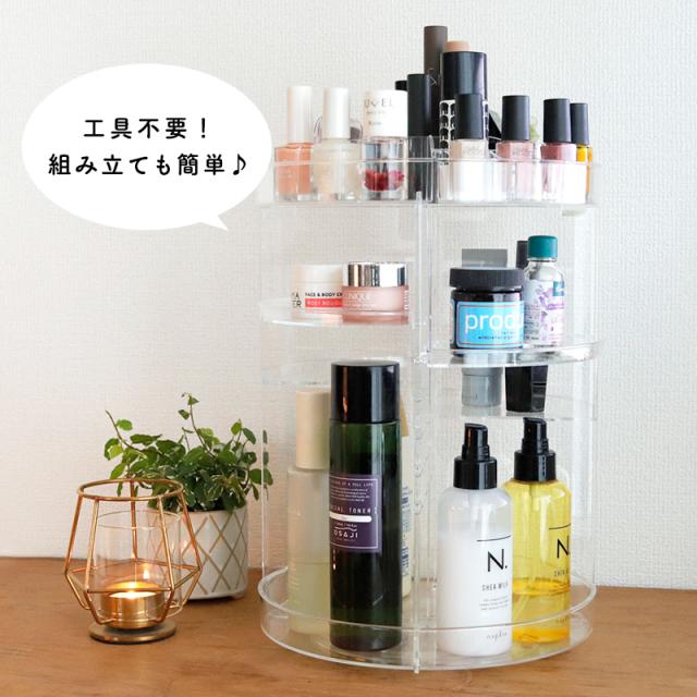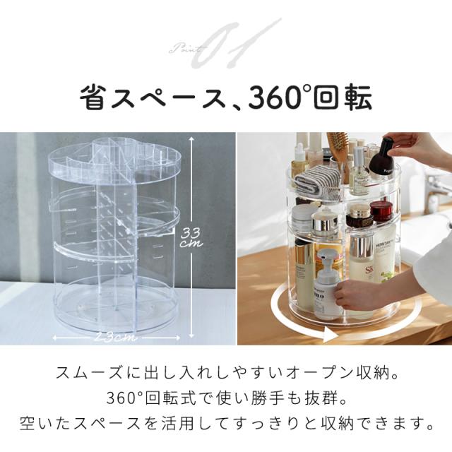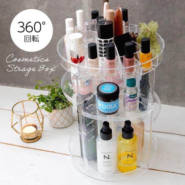 コスメ 収納 ボックス メイクボックス 透明 大容量 コスメ収納ボックス コスメボックス ボックス アクリル 360°回転式 回転式 化粧品 ケア用品 高さ調節可能 おしゃれ 【送料無料】