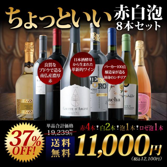 ワインセット 送料無料 当店ソムリエが選んだ“ちょっといい”赤白泡ワイン8本セット(赤ワイン4・白ワイン2・スパークリングワイン2)【お試し ワインセット 家飲み ソムリエ 飲み比べ】