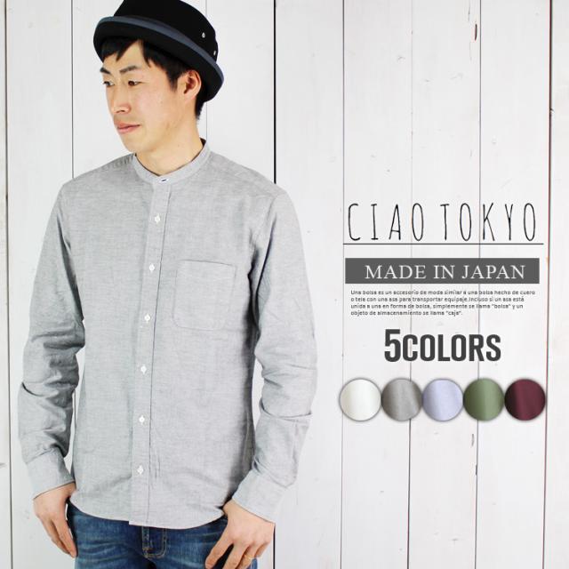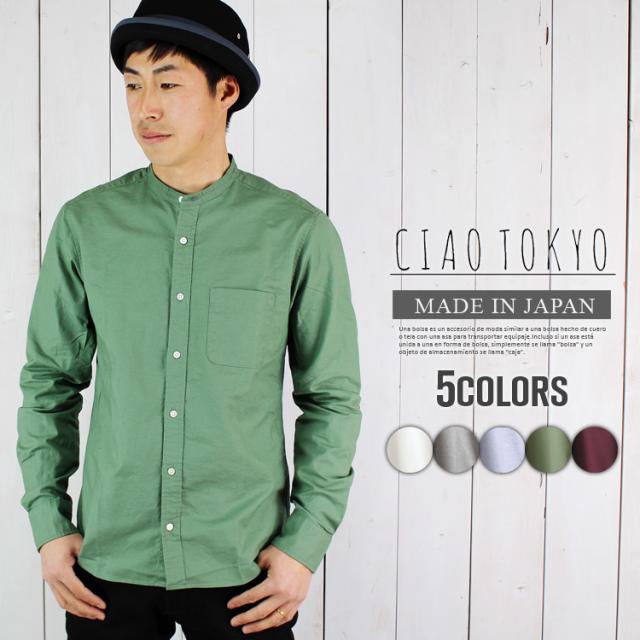 日本製 バンドカラー オックスフォード カジュアル 長袖 シャツ 国産 スタンドカラー 無地 新生活 誕生日 プレゼント 118-55