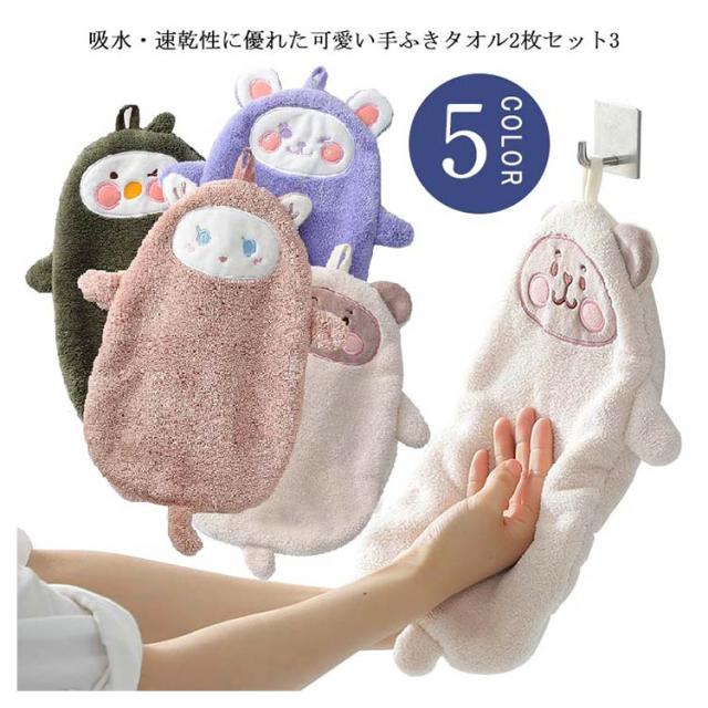 ハンドタオル ループタオル 手拭きタオル キッチンタオル 可愛い 2枚セット 吸水速乾 ひも付き ループひも ふわふわ もこもこ 手拭きタオル 手洗い トイレ 洗面所 プチギフト 手拭き タオル おしゃれ 雑貨 贈り物 プレゼント