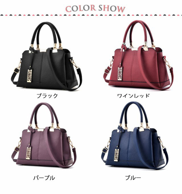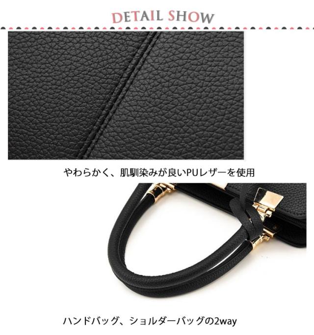 | ハンドバッグ、ショルダーバッグの2wayで使える便利なレディースバッグ。 やわらかく、肌馴染みが良いPUレザーを使用。 本革よりも扱いやすく、女性に嬉しい軽量設計となっております! 見た目以上の大容量収納でポケットや仕切りが豊富にあり、こまごましたものをすっきりと収納できます。 底ビスが付いているので、大切な荷物やバッグをしっかりと保護し、安定感もあります。 通勤や通学、旅行等、幅広いシーンで万能に使えるシンプルデザイン。 | |