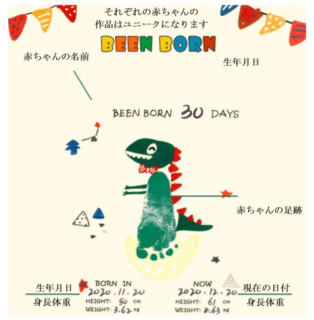 | サイズについての説明 | サイズ:28×33×3cm 付属品:インク、ネームペン、ペイントブラシ、ウェットワイプ ヒント:この製品は1歳未満の新生児に適しています |