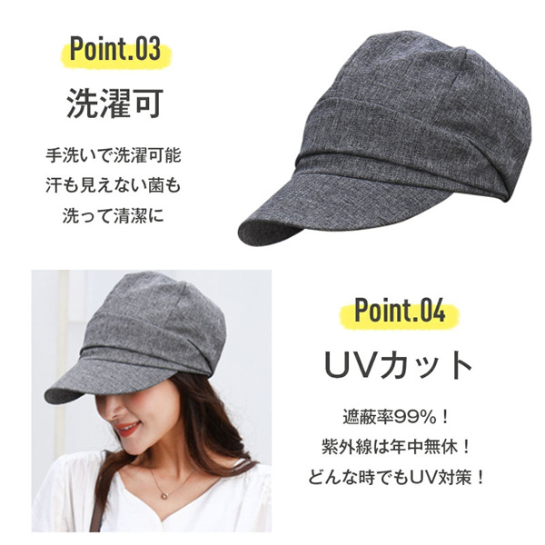UVカット率なんと99%!日差しの気になる季節に最適なUVキャスケットです。