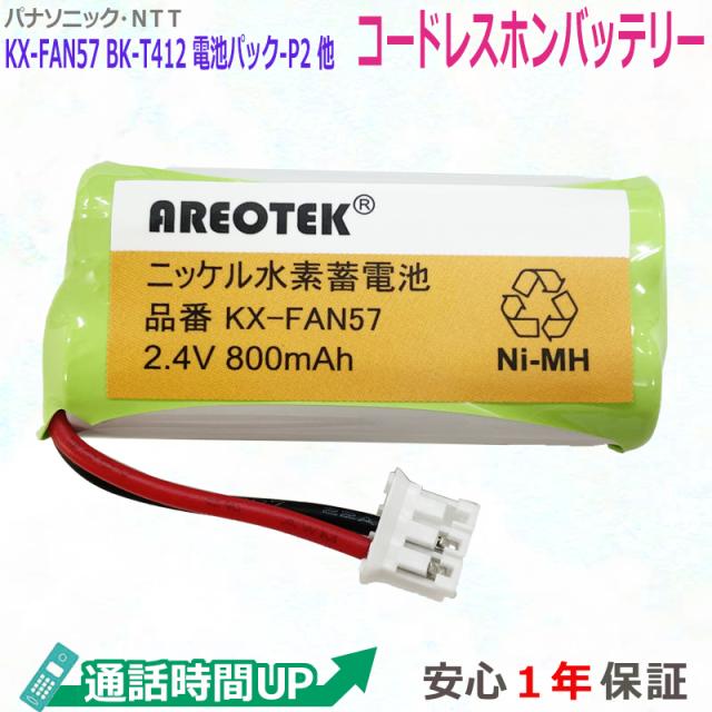 パナソニック KX-FAN57 BK-T412 コードレスFAX 子機 充電池 互換 バッテリー 【純正品と完全互換 】AREOTEK