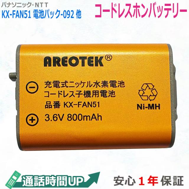 【販売数6万個突破】PANASONIC コードレスホン子機用電池パック KX-FAN51 HHR-T407 NTT電池パック-092 TSA-124 TEL-B2078H 【純正品と完全互換 】