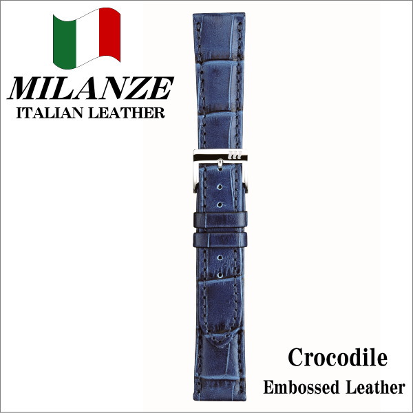 ミランツェ 時計バンド 時計際幅 18mm 美錠幅 16mm 型押しクロコ 紺 ステンレス美錠 バネ棒2本付き ネコポス便対応品