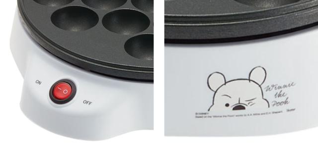 | 簡単操作で分かりやすい 難しい温度調節などは無くオンオフのボタンを押すだけの簡単操作なので、お子さんと一緒のおやつ作りにも安心です。 | くまのプーさんのワンポイント 世界中で愛されているくまのプーさんのワンポイントが、無機質になりがちな調理家電に愛らしいアクセントとなることでオシャレな雰囲気を演出します。 |
