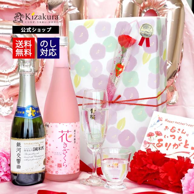 いつもの感謝を込めて「母の日」に贈る日本酒飲み比べセットです。「フレッシュで上質な味わいのと控えめな甘さ」のスパークリング清酒「銀河交響曲 純米」と「香り高くすっきりした味わい」の日本酒「花きざくら」を母の日限定ギフトでお届けします。
