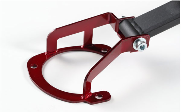 ■ブラケット部分は、BLITZのノウハウを注ぎ込んだ車種別専用設計を採用し高強度を実現しました。さらにレッドメタリック塗装により、強度だけではなくエンジンルームのドレスアップにも貢献します。