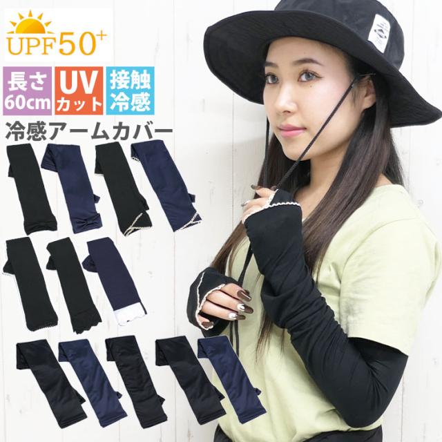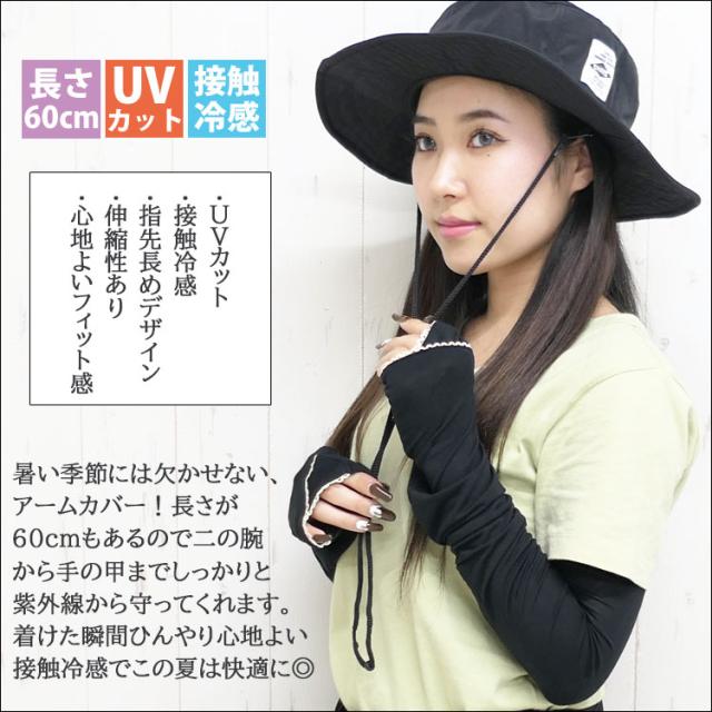 平日12時 平日祝9時即出荷 uv アームカバー ロング 冷感 レディース upf50 涼しい 接触冷感 コットン アーム カバー 二の腕 60cm かわいい 腕カバー 長め おしゃれ レース 指なし 指切り UV手袋 UVカット 紫外線対策 日焼け対策 自転車 アウトドア ママ 夏 黒 滑り止め付き