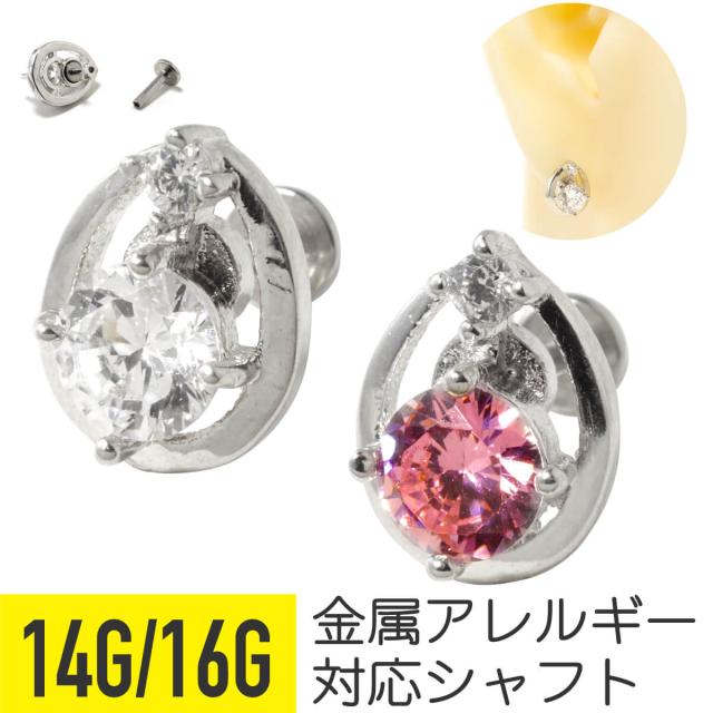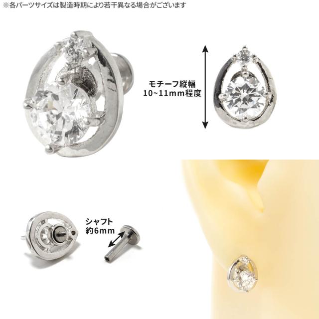 オーバル ジュエル ラブレット ピアス 14G 16G サージカルステンレス ジルコニア ジュエル イヤーロブ トラガス 軟骨ピアス ボディピアス オーバル ジュエル